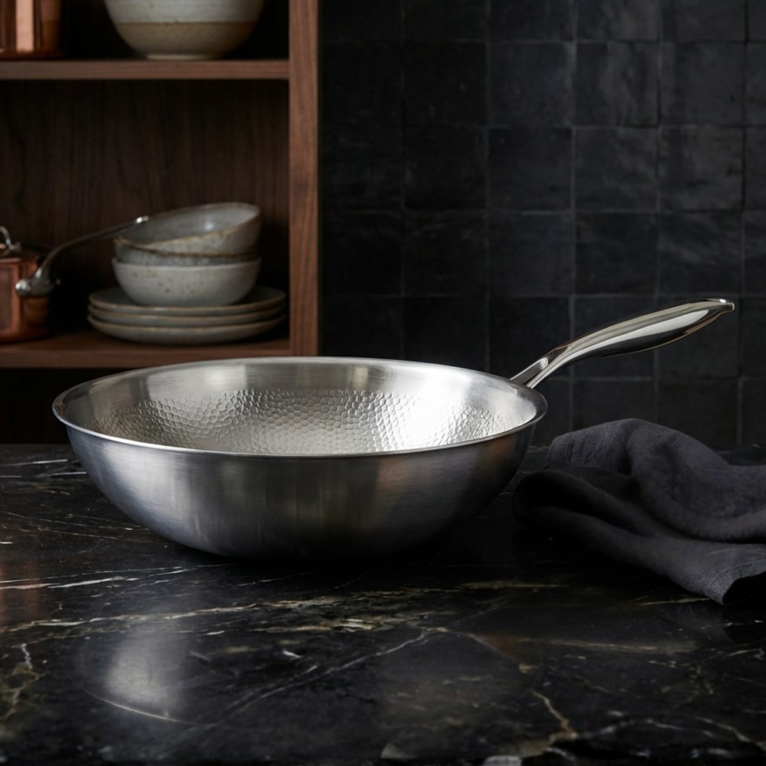 Traditional woks are often made from carbon steel that requires seasoning and rusts easily. Our titanium wok has no coating that can flake off, is rust-free and requires minimal maintenance.